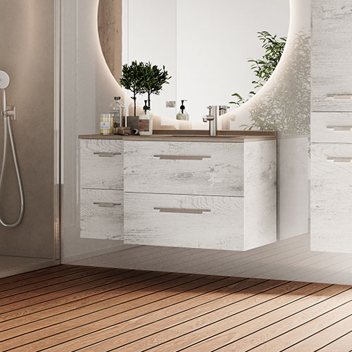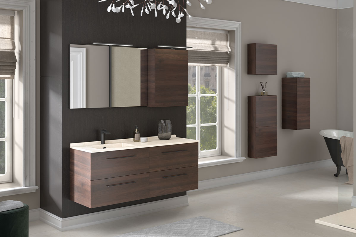 Créez une harmonie en coordonnant meuble, miroir et rangements