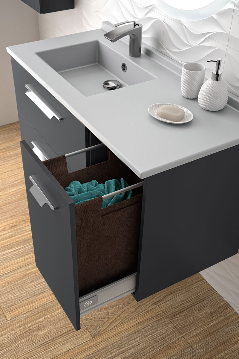 Meuble vasque à droite 1 panier à linge 2 tiroirs