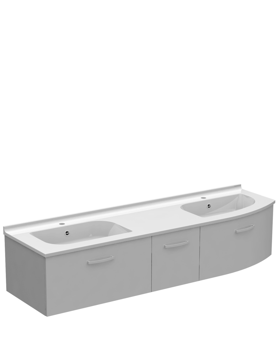 Meuble galbé à droite double vasque 2 tiroirs 1 porte