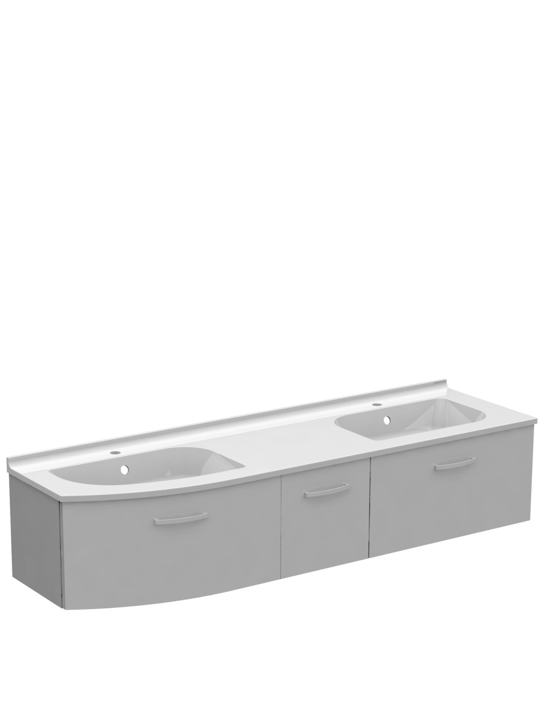 Meuble galbé à gauche double vasque 2 tiroirs 1 porte