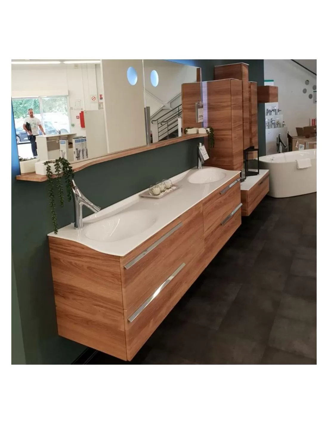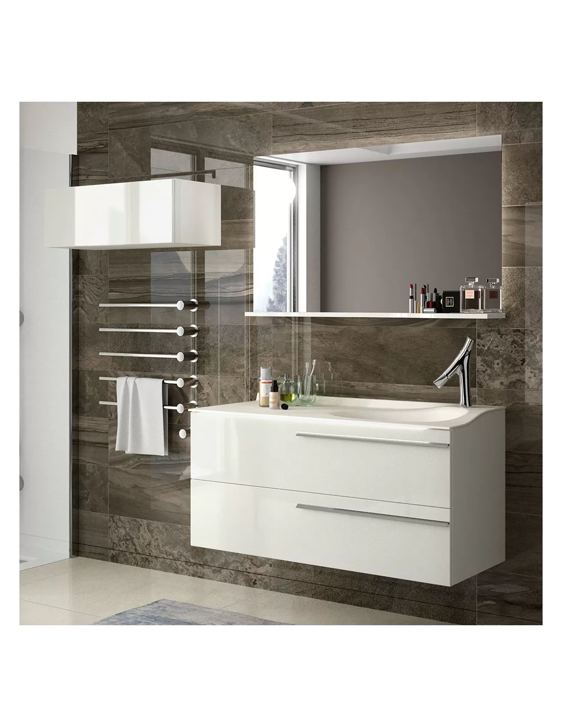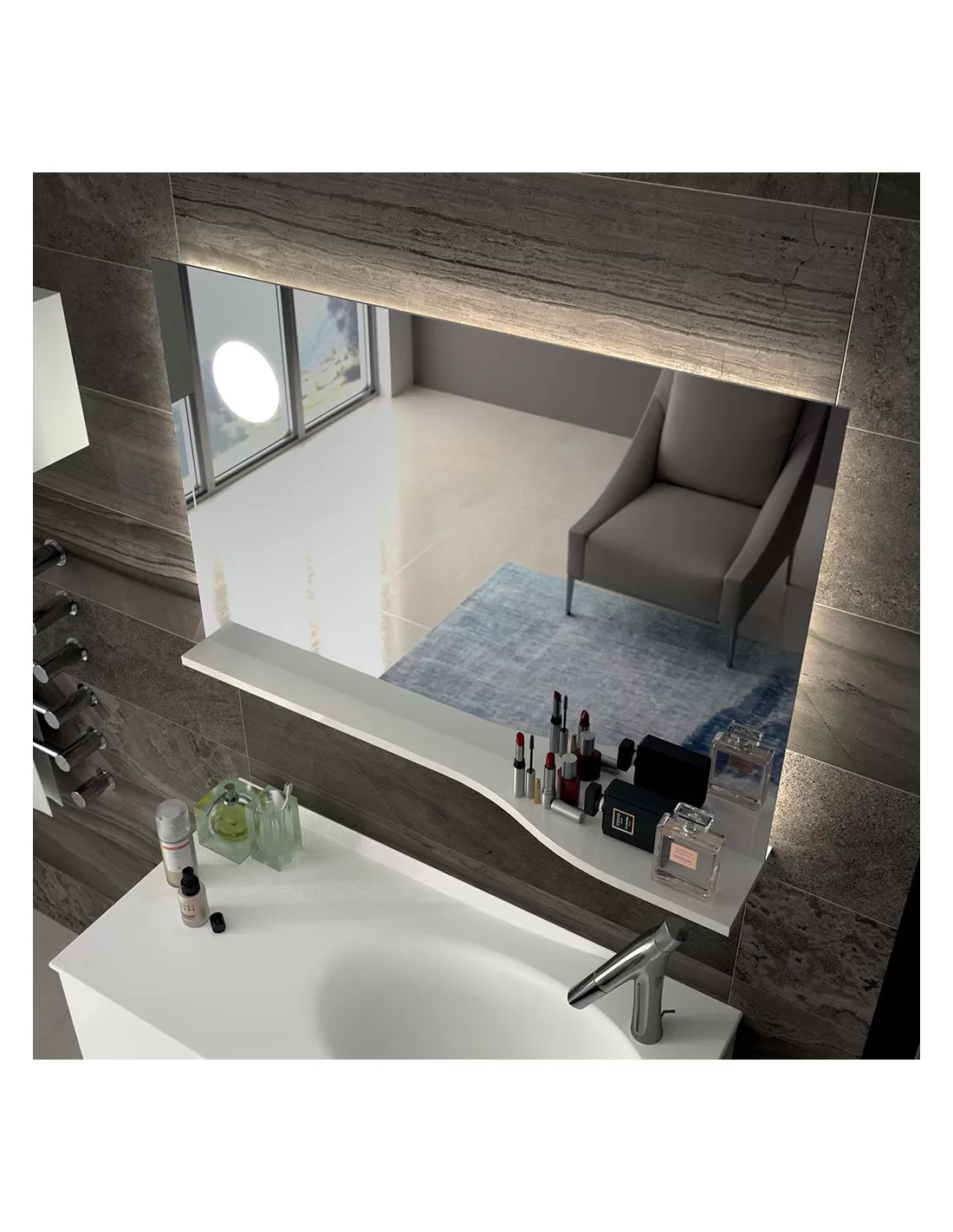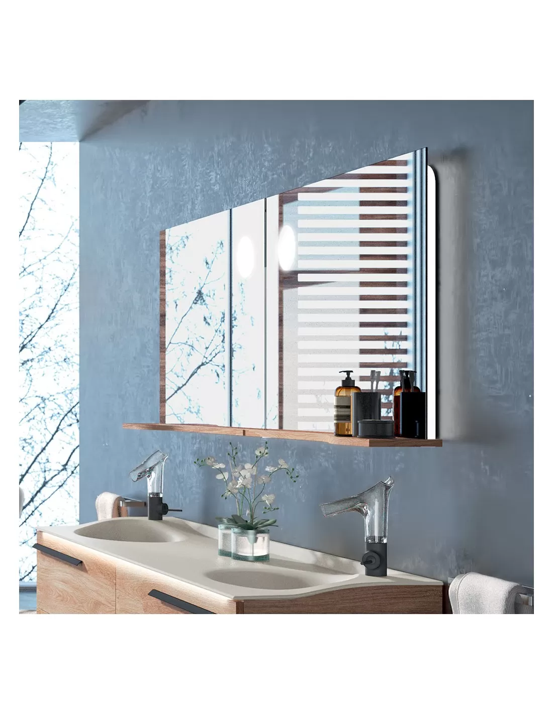Miroir avec tablette à droite et éclairage LED