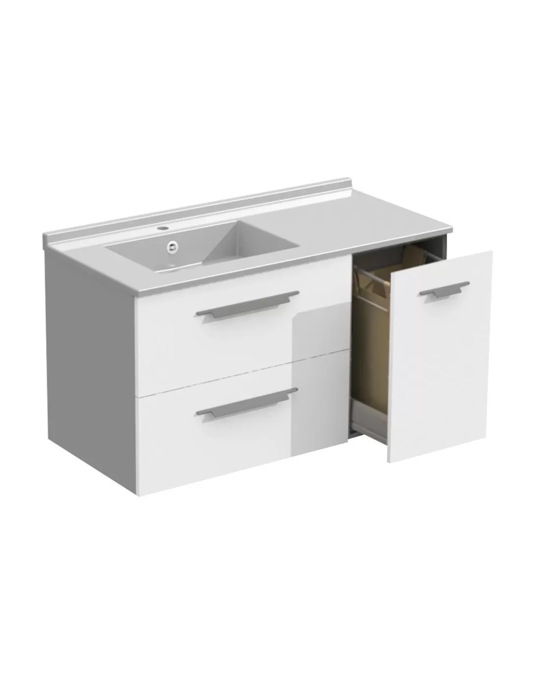 Meuble vasque à gauche 2 tiroirs 1 panier à linge